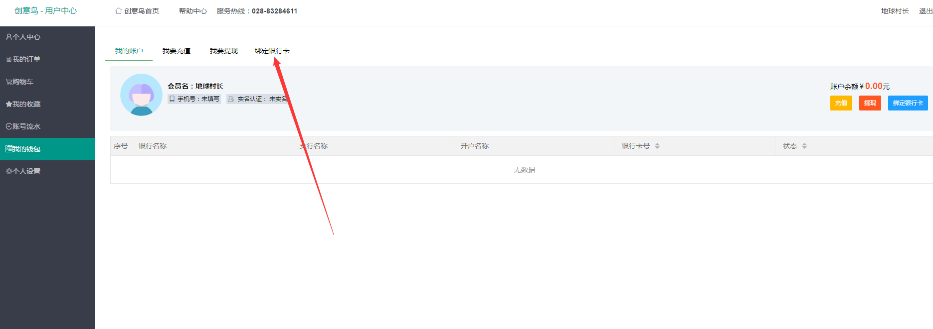 第三步:点击绑定银行卡进行绑定银行卡进行认证即可